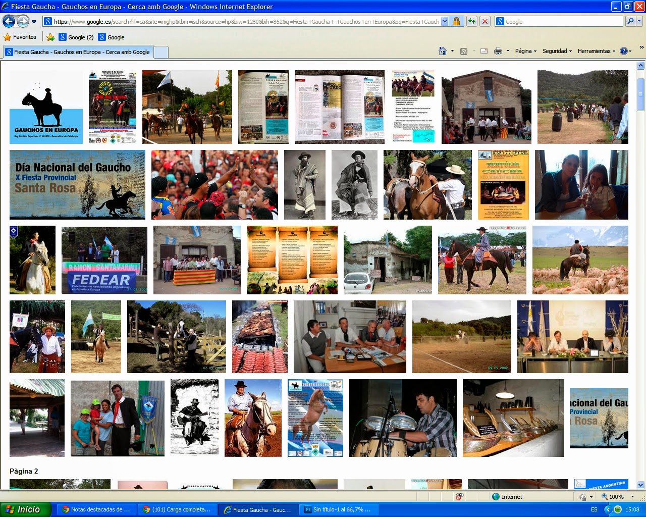 Si ponemos en Google: Fiesta Gaucha - Gauchos en Europa - Can Pradell - Vallgorguina, todo junto o individualmente o por añadidura y buscamos en imágenes, el 90% de las primeras páginas está ocupado por fotografías de nuestros medios, o nuestras de cada uno de nosotros en el web, de nuestros blogs o faces, de nuestra agrupación o de alguna agrupación de la que nacimos (Casal Argentino de Badalona) o otra que nació con el impulso y la ayuda total y desinteresada desde los mismos Guachos en Europa para permitir que otros amigos del caballo que no son gauchos pudieran organizarse asociativamente.